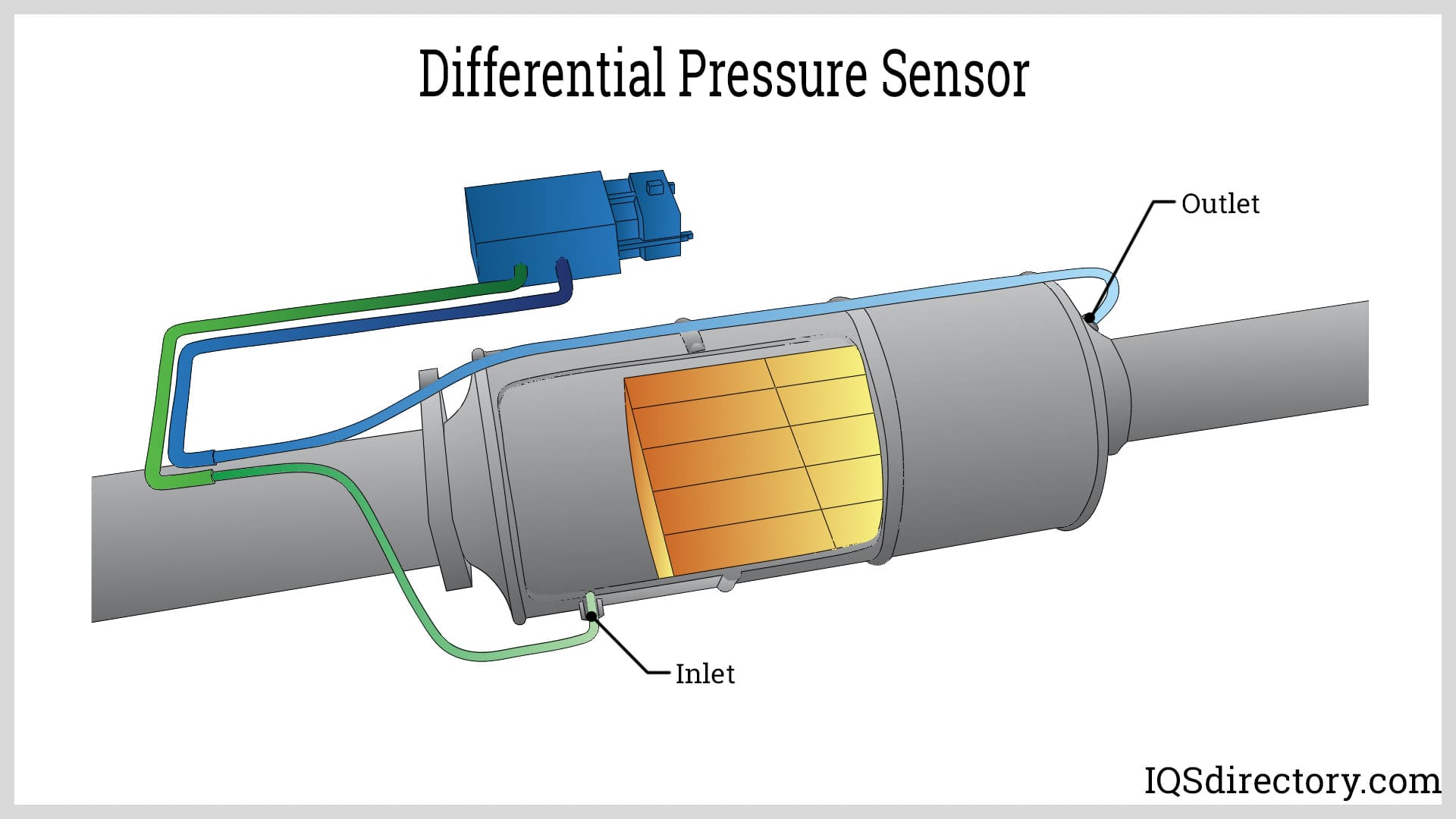 Differential pressure sensors use two points in a system to supply readings. They provide comparative measurements, such as before and after a valve when a valve is closed. The purpose of differential pressure sensors is not to provide pressure readings but to determine if there is a malfunction in a valve, pipe, or system. They have two ports that are inserted into a system. The readings from a differential type pressure sensor are unrelated to atmospheric pressure or other factors. The pressures being measured occur on either side of a diaphragm where the deflection of the diaphragm, positive or negative, creates the difference in pressure. They are commonly used to protect filters from failure.