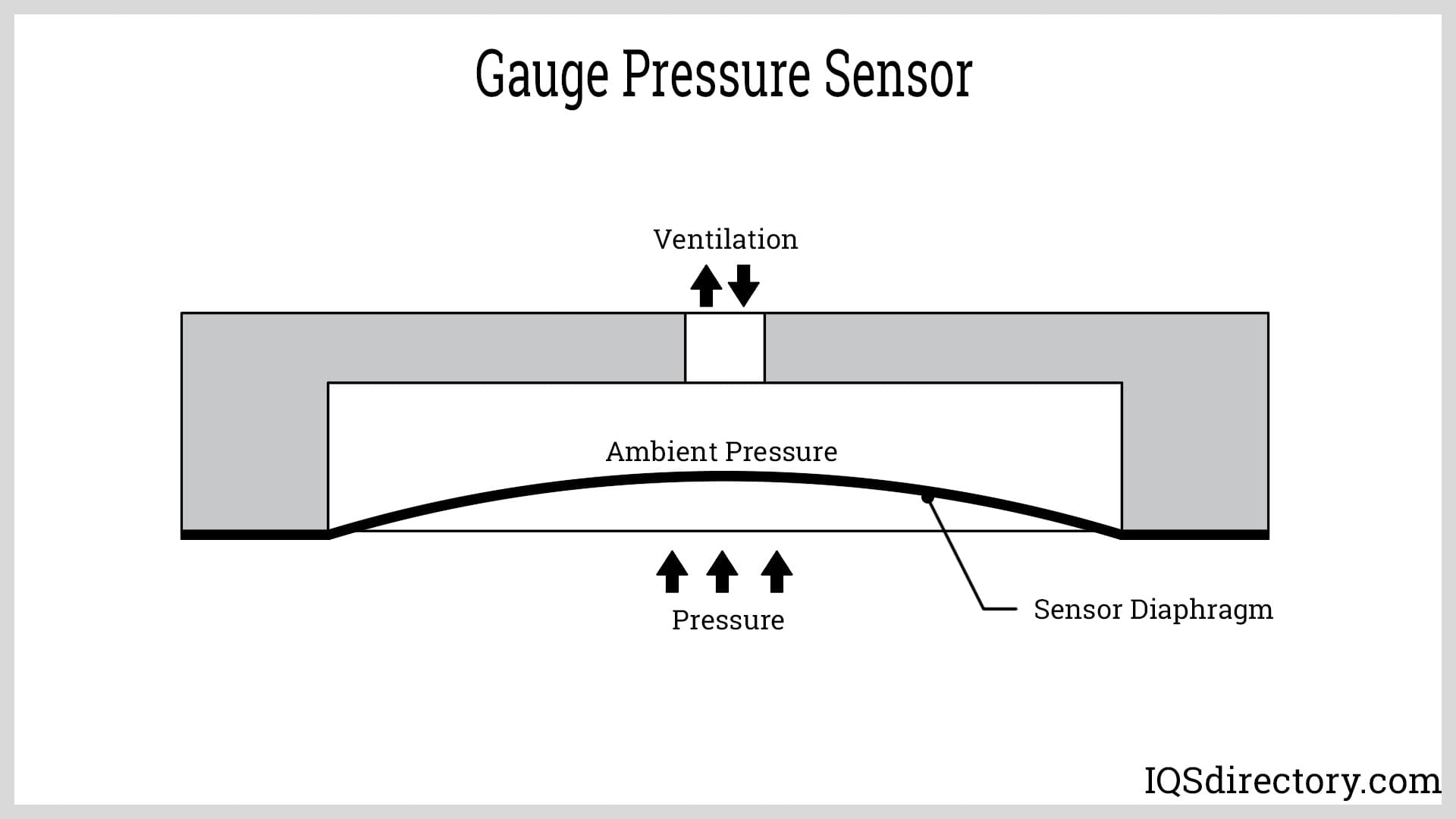 The most common type of pressure sensor is a strain gauge that measures pressure by the deformation or displacement of a material due to applied stress. As with all types of pressure sensors, the readings from the deformation are converted to voltage or electrical signals. The intensity of the signals increases or decreases depending on the applied pressure.