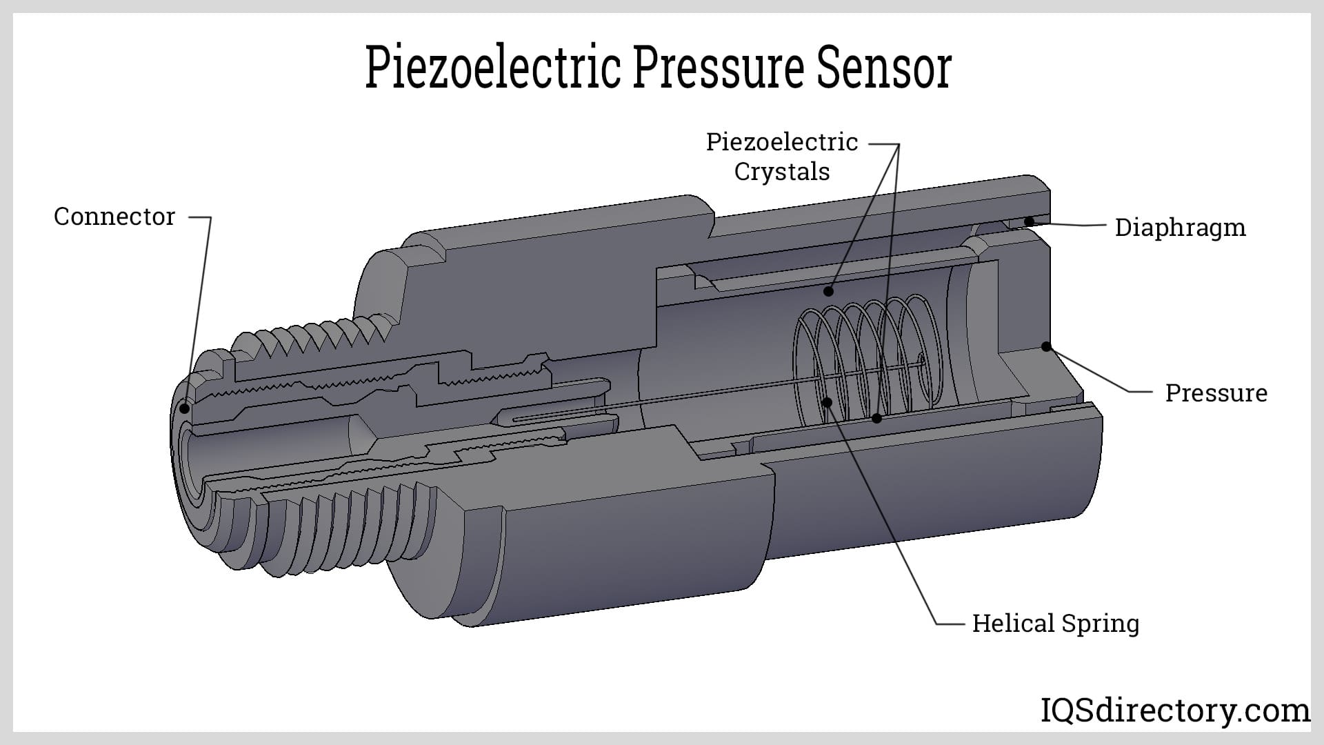Piezoelectric pressure sensors use the piezoelectric effect to measure changes in pressure, acceleration, temperature, strain, and force. Piezoelectricity is created when mechanical stress is applied to specific materials. As pressure sensors, piezoelectric pressure sensors measure the voltage generated on a piezoelectric element when pressure is applied to it.