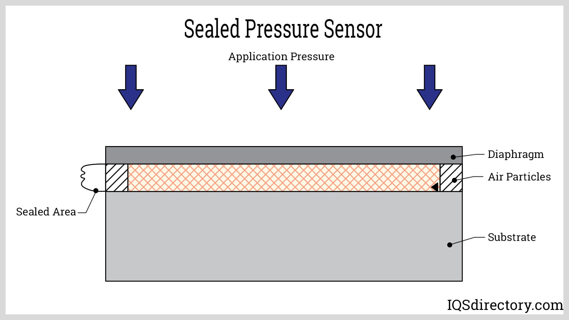 Sealed pressure sensors measure pressure using atmospheric pressure as a referent. They combine relative pressure with sealed sensor elements. The reference pressure for a sealed pressure sensor is atmospheric pressure trapped behind the sensor’s diaphragm, which is at 14.7 psi or sea level pressure. Sealed pressure sensors are used with applications that require a high-pressure range and consistent temperature where venting is not available.