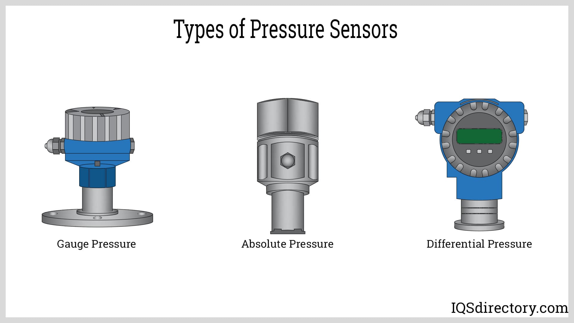 Pressure sensors are a vital part of manufacturing operations. They control and monitor gas and fluid flow and speed as well as provide altitude and water level measurements. The many uses of pressure sensors have led to the development of their many different types, which vary by technology, design, performance, durability, and cost.