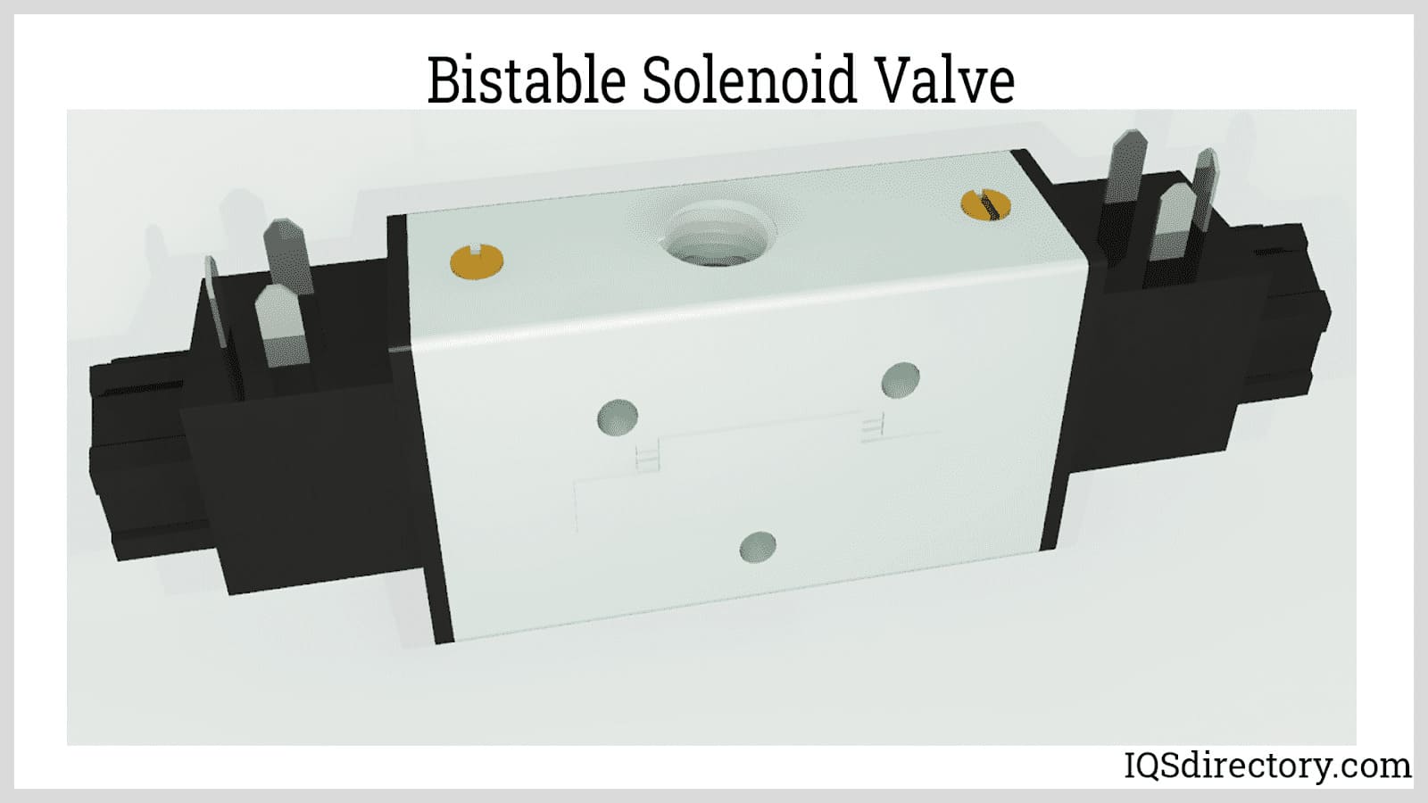Normally open and normally closed solenoid valves are categorized as monostable valves. In contrast, bistable solenoid valves feature an additional solenoid instead of a spring return mechanism. These valves lack a default position and stay in their last actuated state even after power is removed.