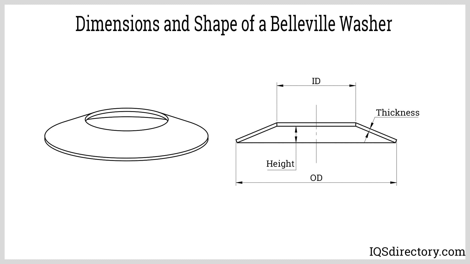 Belleville washers are unlike traditional springs. They are conical shaped washers that provide spring like action when compressed. Belleville washers, also known as disc springs, coned disc springs, conical spring washers, or cupped spring washers, have a conical shape with an inner portion that is raised and higher than the outer edge of the washer, a shape that makes them capable of handling heavy loads in the same manner as a spring.