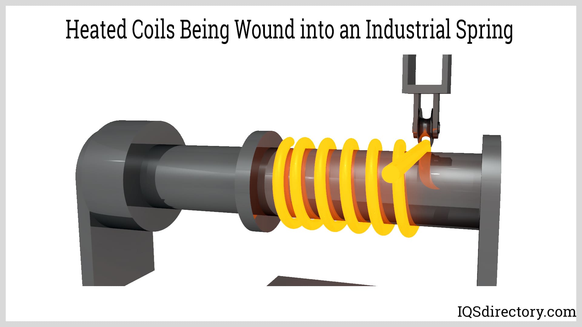 All forms of springs, flat or wire, involve a winding process to produce the helical configuration. Once wound, the shapes and forms of springs vary in accordance with their attachments and functions. The key factor for industrial springs is the strength and durability of the materials from which they are made.