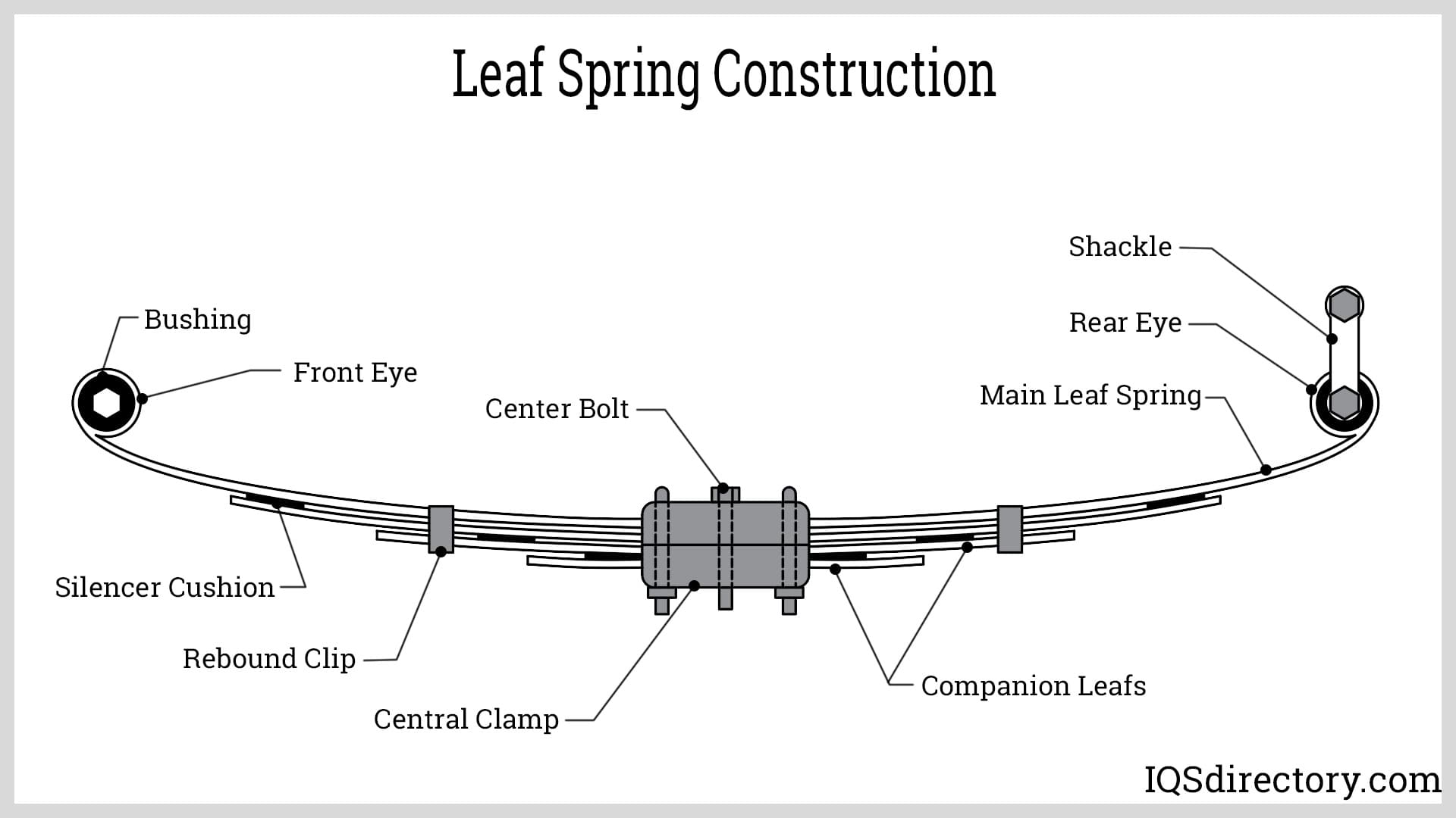 The elliptical shape of leaf springs is due to the use of spring steel, which flexes when pressure is applied at either end of the steel. Leaf springs have the same characteristics as other forms of springs in that they return to their original shape when a load is lifted. In the case of leaf springs, the return to normal is completed through a damping process.