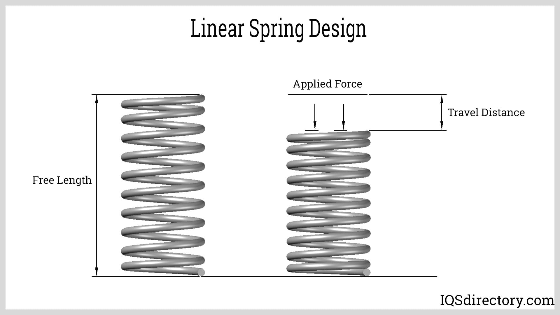 For a linear spring to operate correctly, the force that is applied to it should not exceed its elastic limit. Linear springs have a defined spring rate per inch of deflection. If that rate is exceeded or violated, a linear spring will fail.