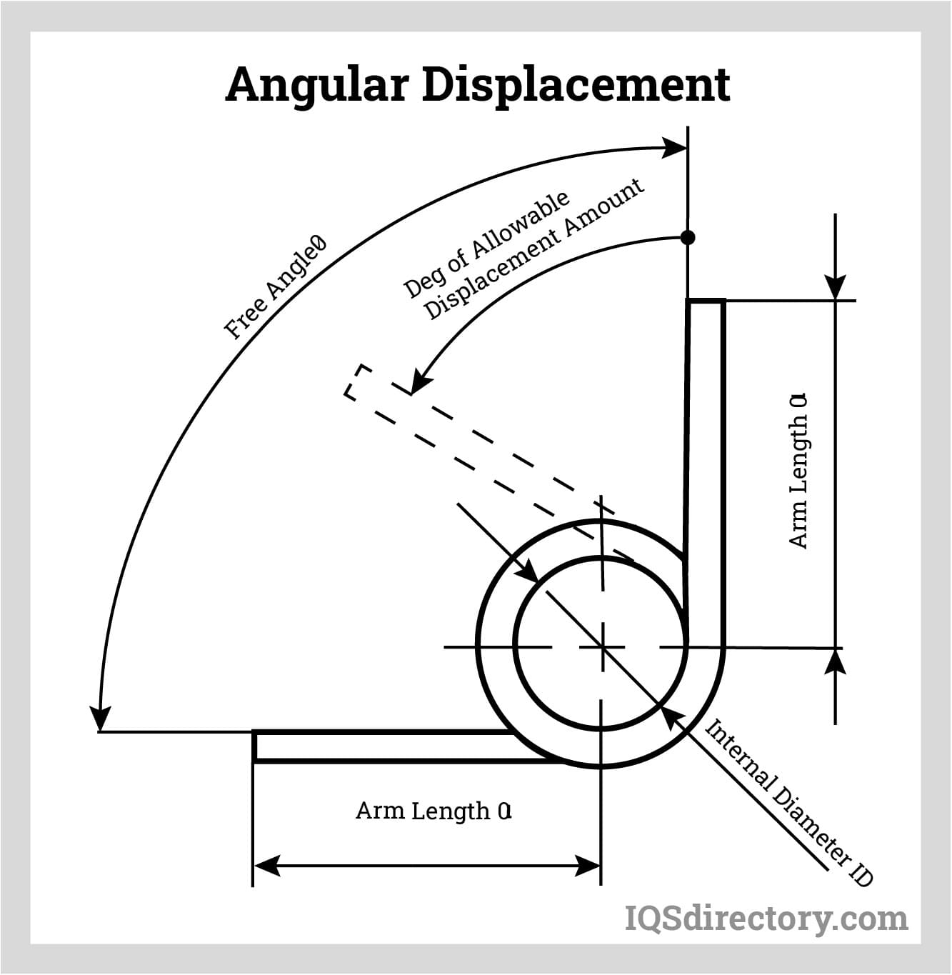 Angular deflection is the angular distance (in degrees or radians) that the leg of a torsion spring travels from its free (unloaded) position to its loaded (maximum torque) condition. This parameter determines the range of rotational motion the spring can safely accommodate, making it a key factor for applications like spring hinges, lever arms, and actuators.