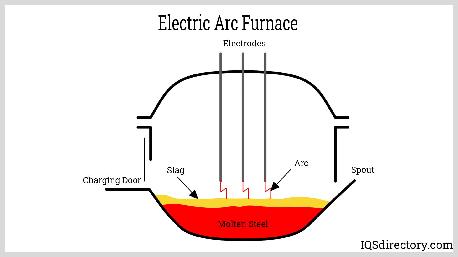 The raw materials for the forming of stainless steel are melted together in an electric arc furnace where carbon electrodes make contact with the raw materials. As electric current passes through the electrodes, the temperature in the furnace increases to the point that the raw materials melt into a molten mass. The ratios of the various elements and chemicals placed in the electric arc furnace are carefully measured to produce the desired type of stainless steel.