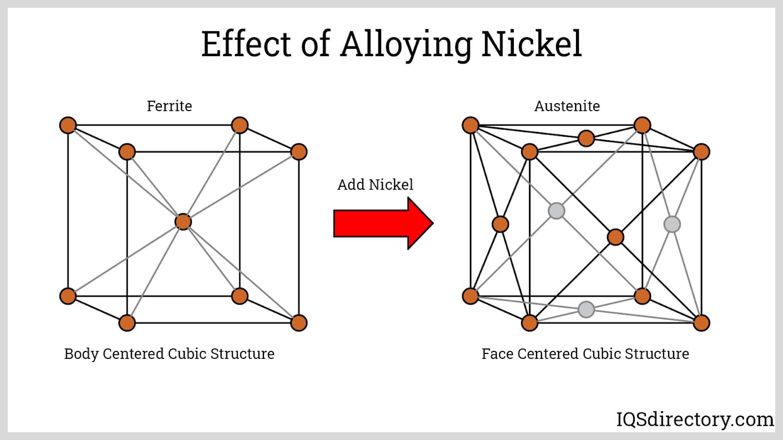 Nickel: Nickel is added to stainless steel to form or retain an austenitic microstructure at room and low temperatures. The minimum amount required to stabilize an austenitic microstructure is around 8 to 9%. In austenitic stainless steels, 10 to 14% is required due to the addition of molybdenum, another ferrite former aside from chromium.