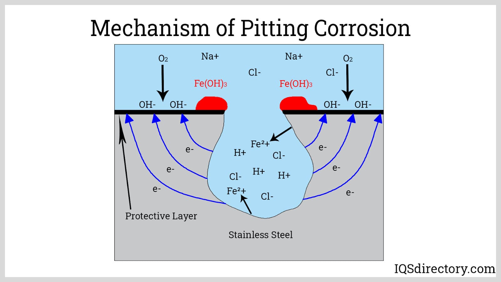 Corrosion Resistance: All stainless steel 316 grades have molybdenum as an alloying element that further improves corrosion resistance, particularly pitting corrosion. Pitting is a highly localized type of corrosion that creates shallow holes on the surface of the metal. This takes place in the presence of solutions containing chloride ions, such as seawater. High resistance to pitting corrosion makes stainless steel 316 recommended for marine applications. Molybdenum, together with chromium and nitrogen, is one of the factors in determining the pitting index or pitting resistance equivalence number.