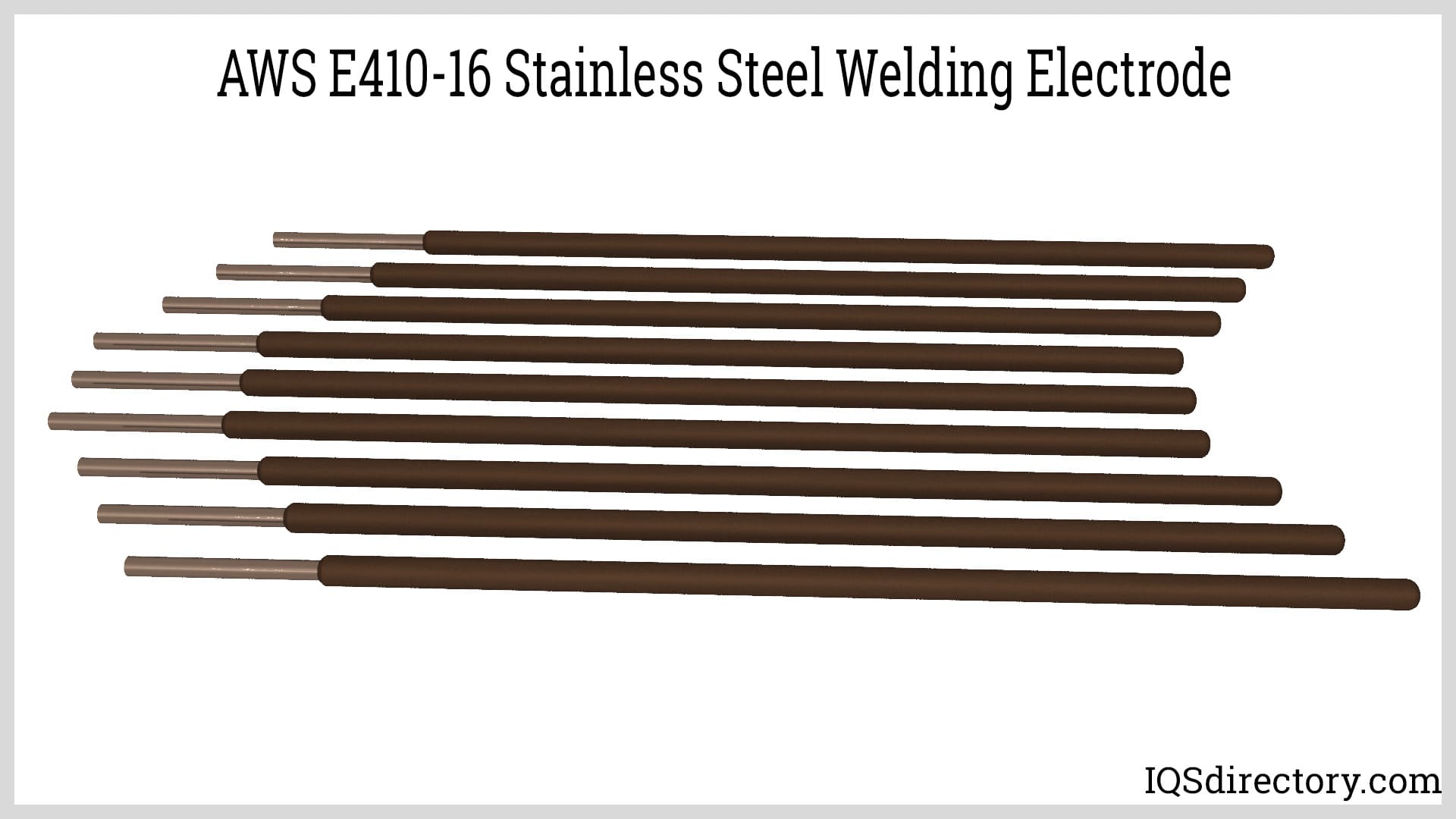 AWS E410-16 are coated electrodes with a titania flux coating, which are used for welding and repairing stainless steel grades 410, 416, 420, and 431. It is a coated electrode with hardenability with exceptional strength and moderate resistance to corrosion with a tensile range of 700 Mpa up to 850 Mpa. AWS E410-16 has excellent rust resistance and can be hardened to a Rockwell hardness of 40 depending on the amount of carbon it contains. There is a wide assortment of applications for which AWS E410-16 is used including bolts, bushings, and various types of fasteners.