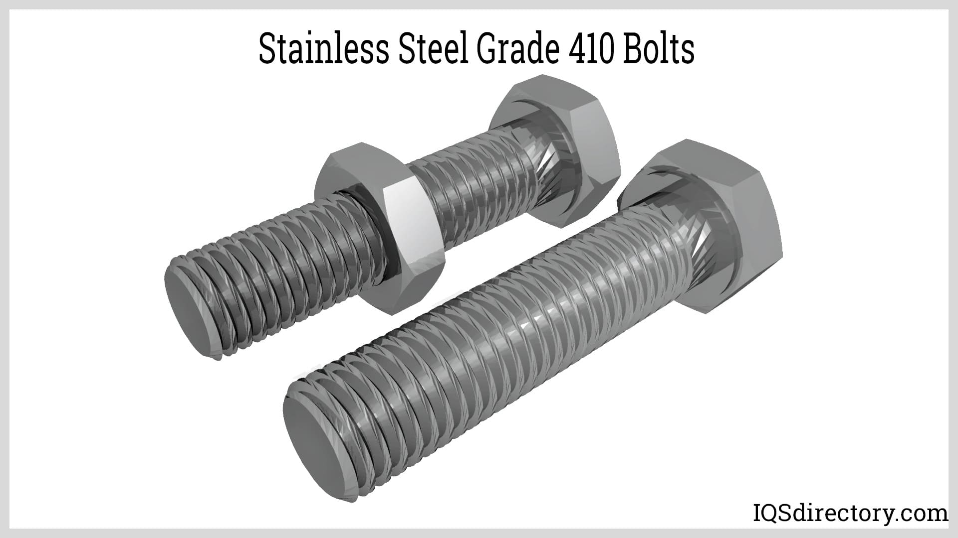 Grade 410 offers high strength, hardness, moderate corrosion resistance, and ferromagnetic properties. It has a tensile strength of about 65,000 psi, is heat treatable for increased hardness, and is valued for use in diverse industrial applications.