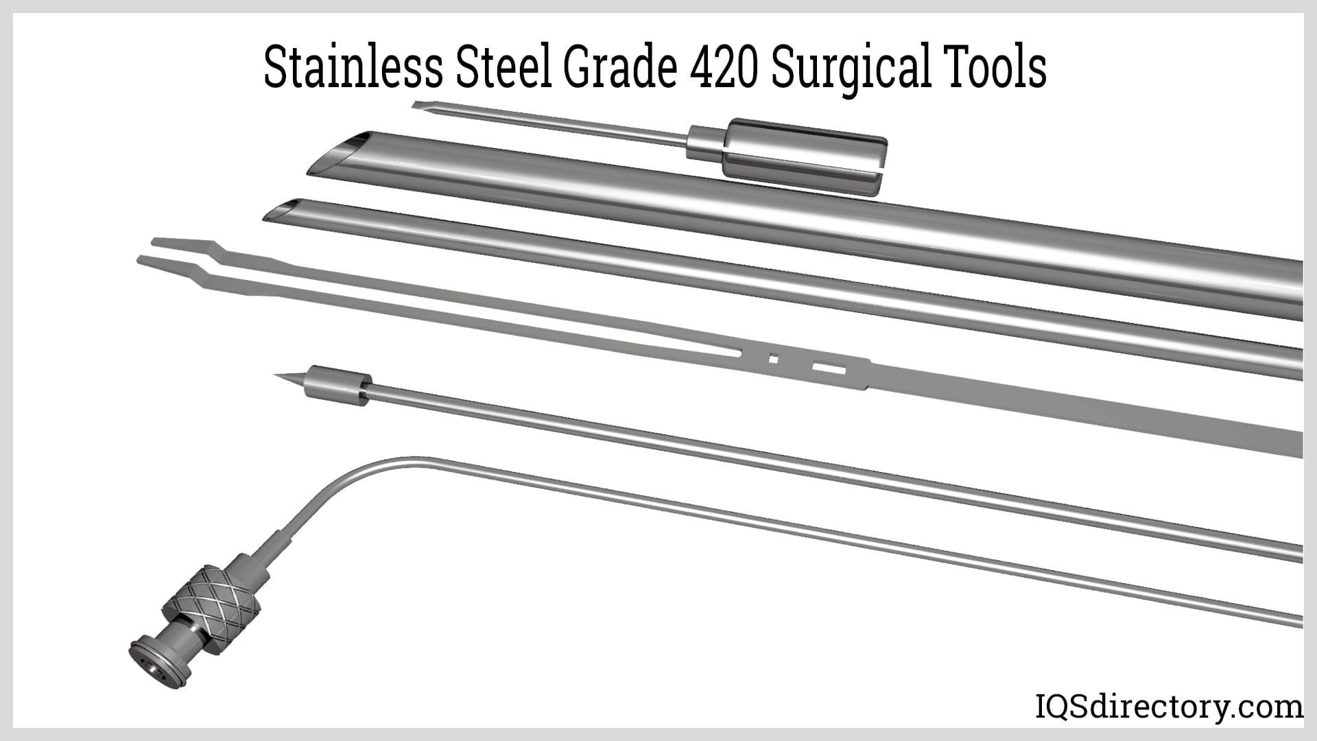 Stainless steel grade 420 is referred to as a surgical grade stainless steel and capable of being used for biomedical applications. Although the term medical grade stainless steel is used to describe grade 420, there isn’t a formal definition for what surgical stainless steel is. In most cases, any stainless steel with sufficient corrosion resistance is referred to as surgical stainless steel. In the case of grade 420, its edge retention, strength, hardness, and toughness makes it ideal for the manufacture of surgical tools.