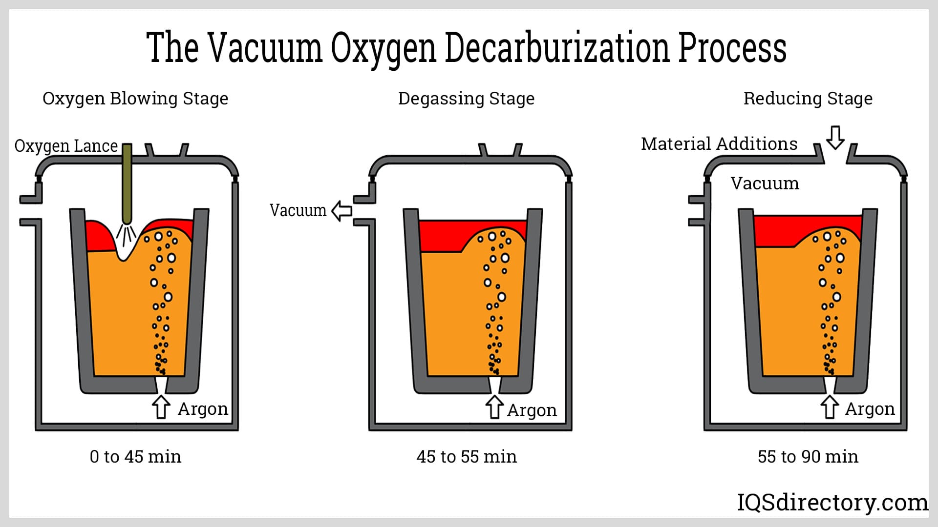 The process involves melting, carbon removal using AOD or VOD, stirring, casting, annealing, cutting, and surface finishing. Each step is tightly controlled to achieve desired strength, hardness, and structural uniformity for industrial-grade performance.