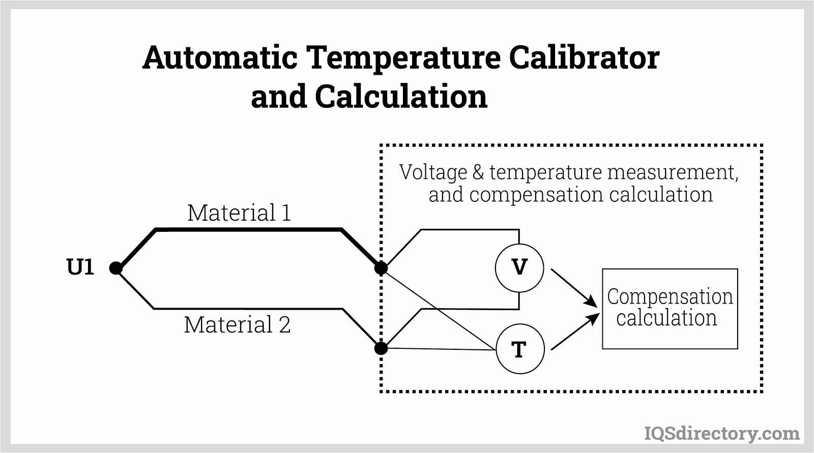 Reference junctions on a thermocouple may experience temperature fluctuations, which can lead to inaccurate readings. To ensure accurate measurements, the reference temperature can be stabilized by immersing the reference junction in water or by using a reference junction compensator. This compensator adjusts for any ambient temperature changes. The image below provides a simplified representation of a compensation calculator.