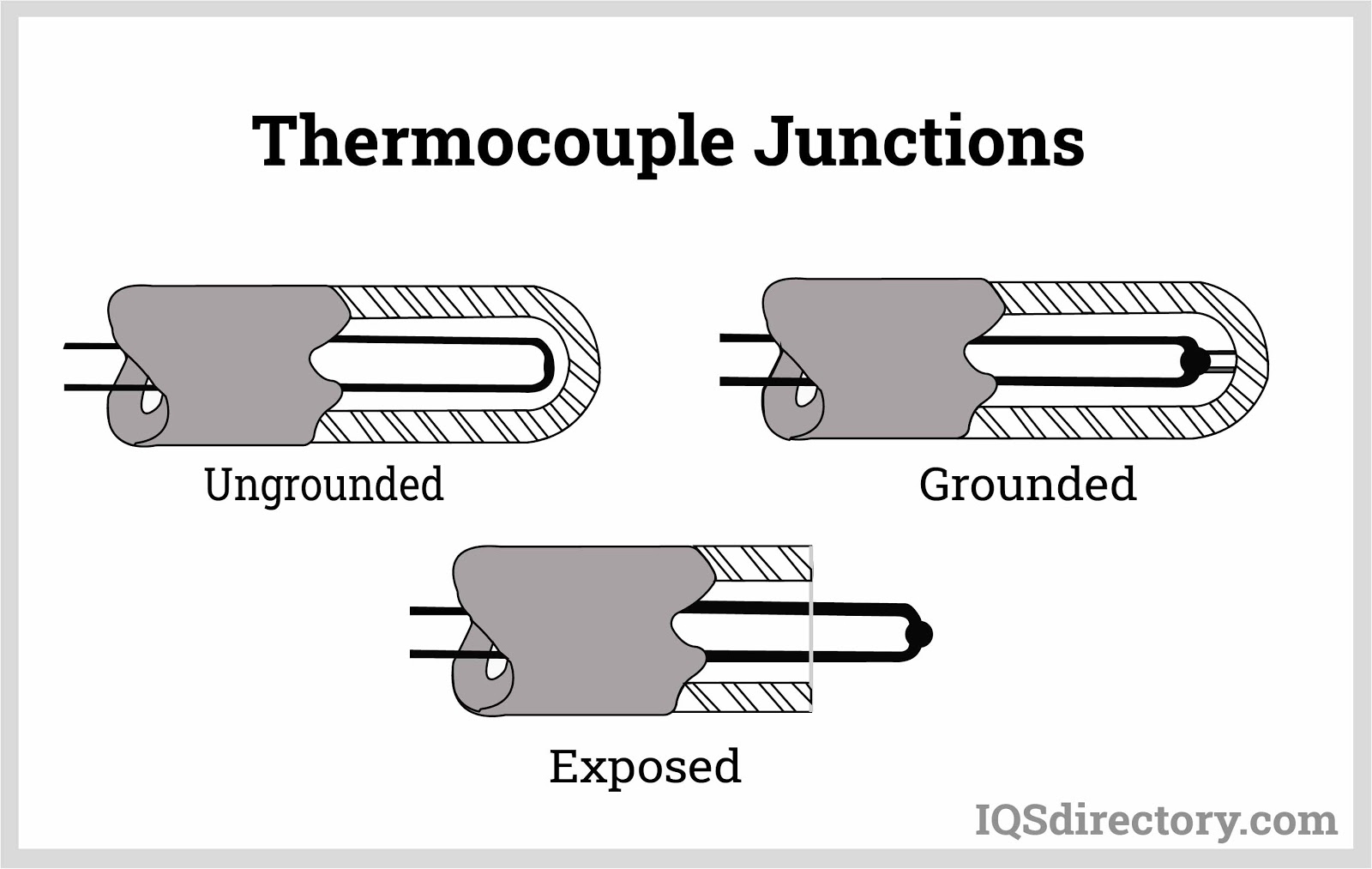 Exposed junction – In an exposed junction, the conductors are outside the thermocouple sheath. They have a very rapid response to temperature changes, making them ideal for applications requiring real-time monitoring, such as scientific research and quick-response thermal profiling. However, these sensors can be easily damaged by harsh environments, chemicals, and mechanical impact. The best use for exposed junction thermocouples is where fast thermal response is critical and there is a low risk of sensor damage, such as air or gas temperature measurement in clean, non-corrosive environments.