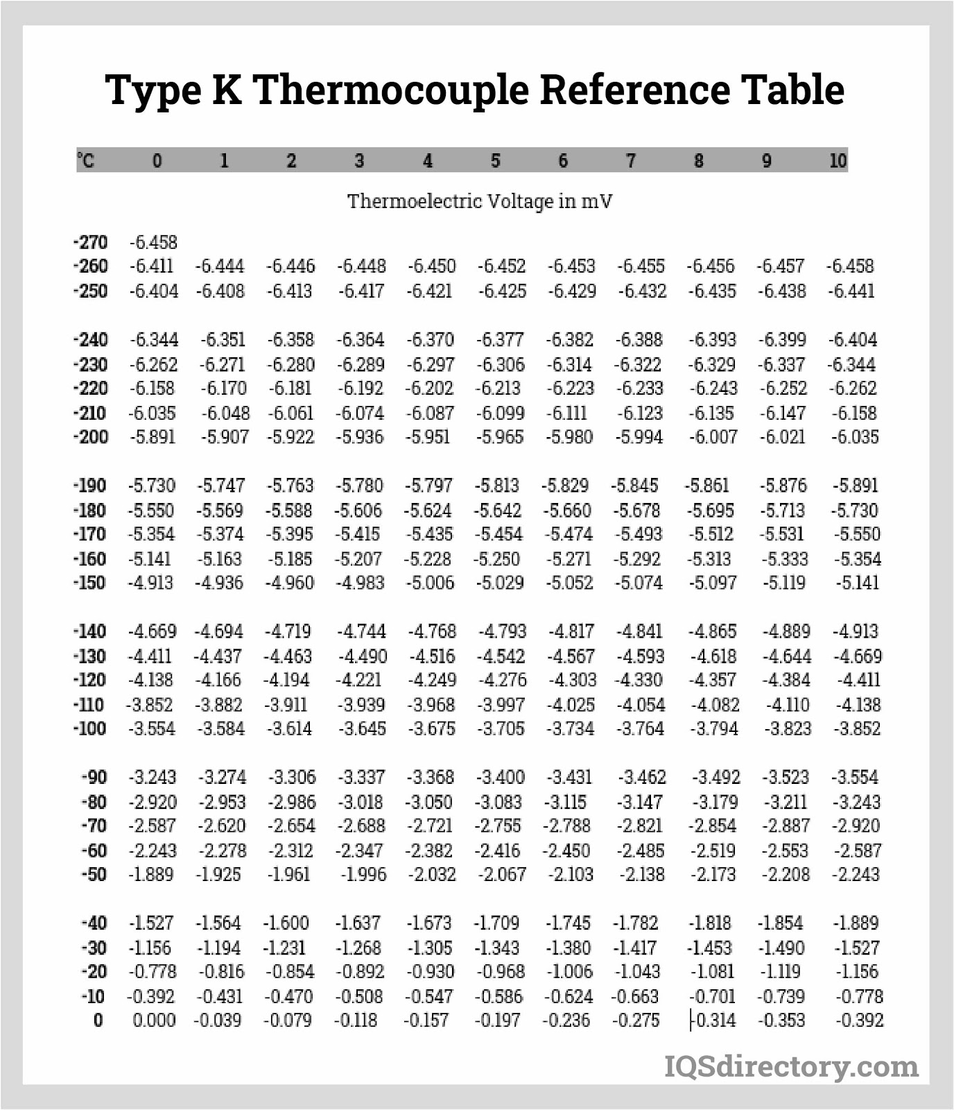 Type K thermocouples use chromel for the positive leg and alumel (nickel, with aluminum, silicon, and manganese) for the negative leg. Their temperature range spans -300°F to 2300°F (-200°C to 1260°C), and they are renowned for their reliability in general purpose and industrial temperature measurement. Widely used due to cost-effectiveness, corrosion resistance in oxidizing atmospheres, and good signal stability, Type K is often the first choice for furnaces, automotive exhaust, gas turbines, and process engineering. Performance varies at low temperatures or in certain inert gas environments, so proper calibration is essential to achieve best accuracy.