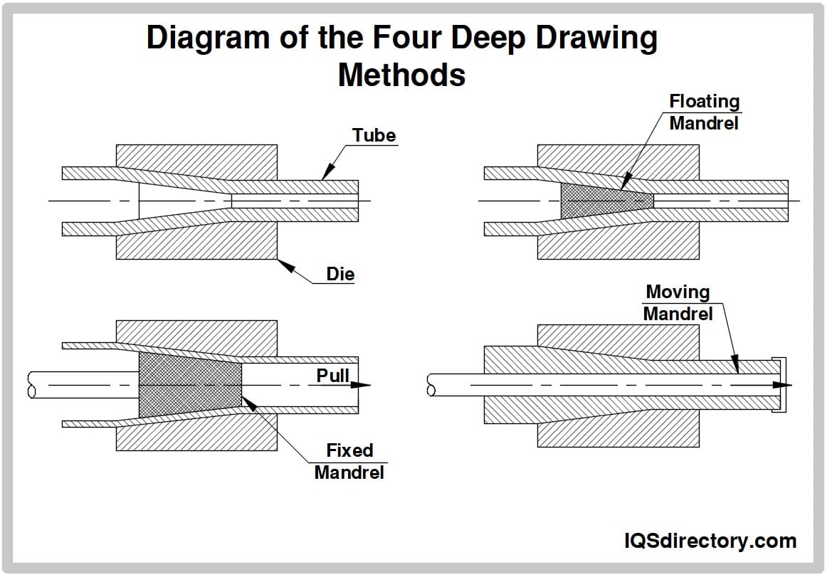 Moving mandrel deep drawing draws a cylindrical mandrel along with the tubing, efficiently reducing the tube wall to achieve the desired thickness and strength. This approach is used for production of seamless pipes with exact interior and exterior dimensions.