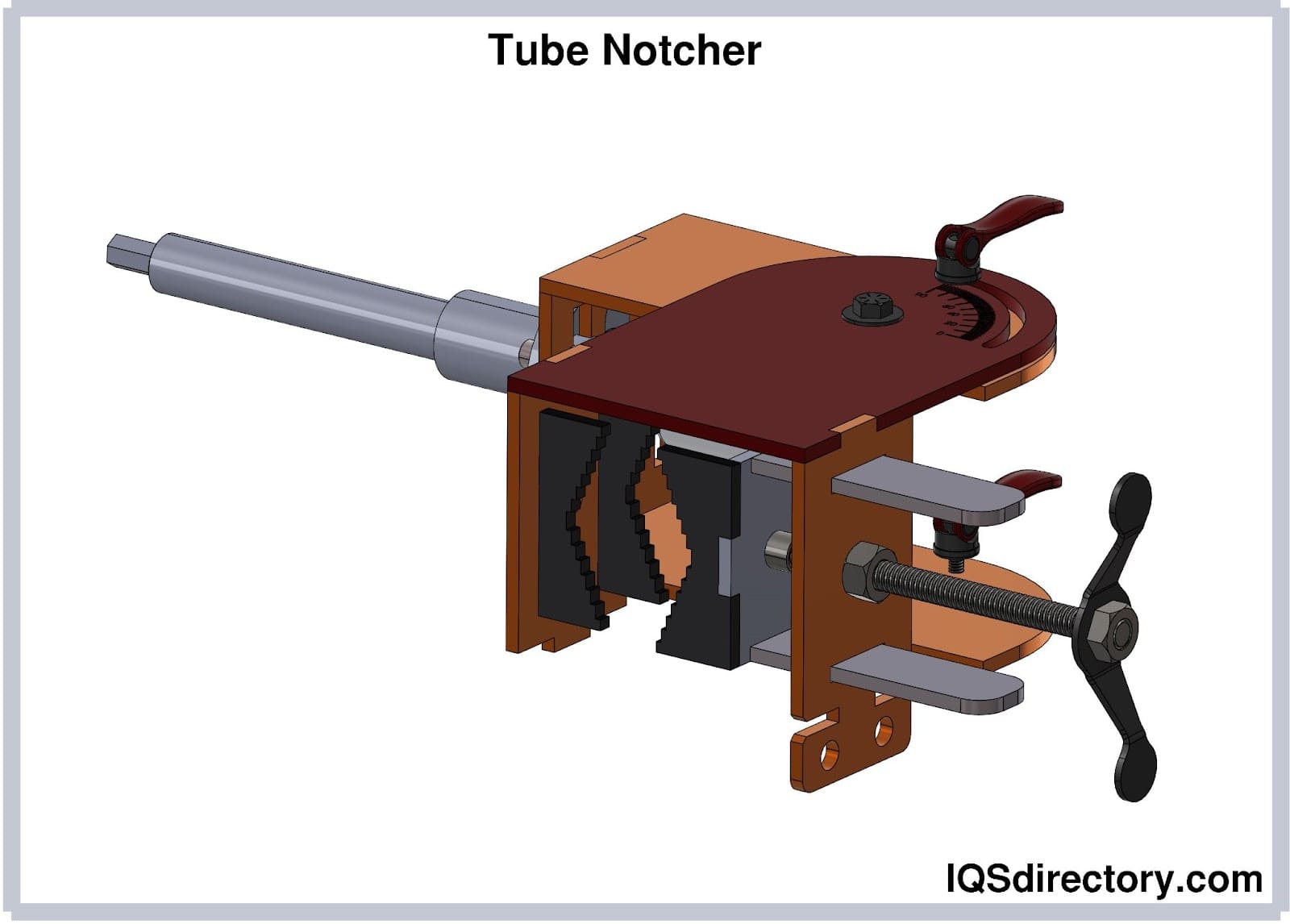 Tube and pipe notchers are used to reshape the ends of tubes by removing a portion of the material, enabling them to be mounted on other tubes and mechanical parts. Notched tube ends are often welded to create joints for structural applications. Side-notched pipes, for instance, facilitate the fabrication of tee fittings used in fluid flow branching.