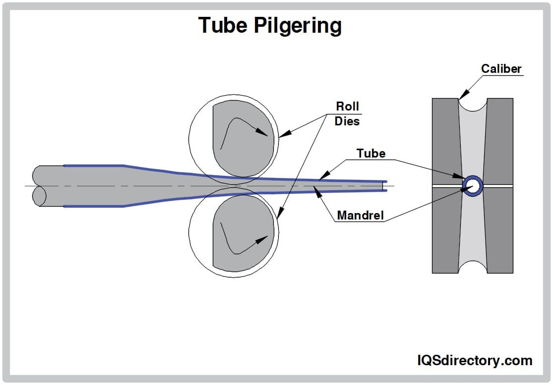Pilgering is a specialized tube reduction process used for achieving substantial reductions in both diameter and wall thickness—often exceeding 90% in a single pass. Both hot pilgering (for alloy, stainless, and refractory metals) and cold pilgering (for tight-tolerance applications) involve a set of ring dies and a tapered mandrel. The process forms seamless tubes with superior surface finish, tight roundness, and exceptional concentricity—key characteristics for nuclear, aerospace, oil and gas, and critical pressure piping systems.