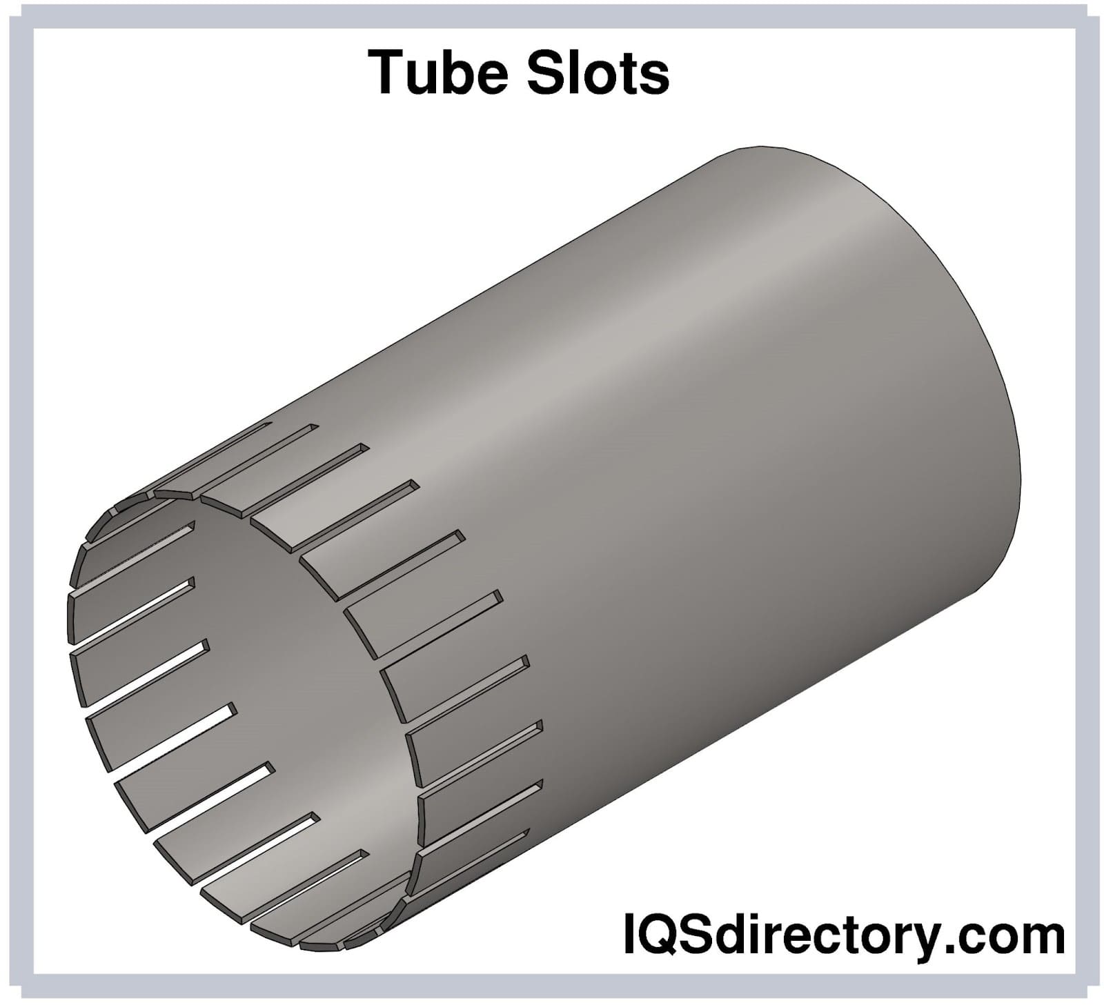 Tube slotters are used to remove a portion of tubing material to create slots. Slots can be formed using a press, where a punch strokes the tube and applies shear force to cut the material. Mandrels are used to support the tube internally during the cutting process. Additionally, slots can be created through machining or laser cutting methods.