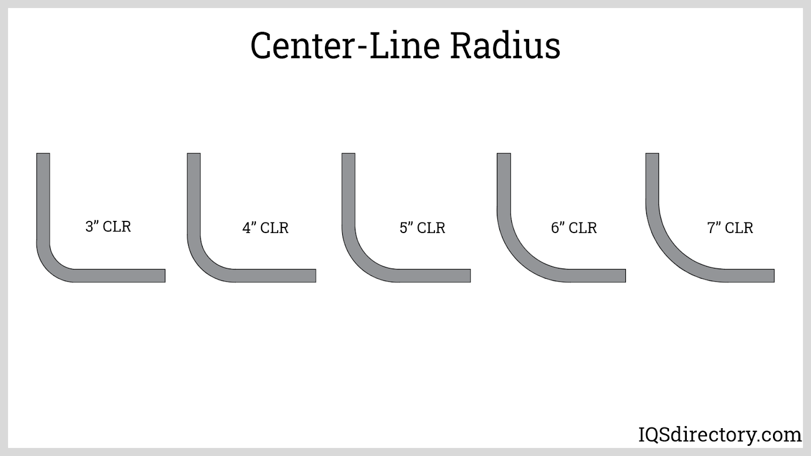 Center-Line Radius (CLR). The center-line radius is the measurement from the center of the curvature to the centerline (axis) of the tube. This radius may match the die radius based on how the die interacts with the tube. For tubes with identical radial dimensions and materials, a larger CLR results in a longer curvature. CLR is commonly known as the bend radius, and it is a critical specification for high-precision tube bending, especially in applications like automotive exhaust systems, hydraulic lines, and structural steel frameworks.