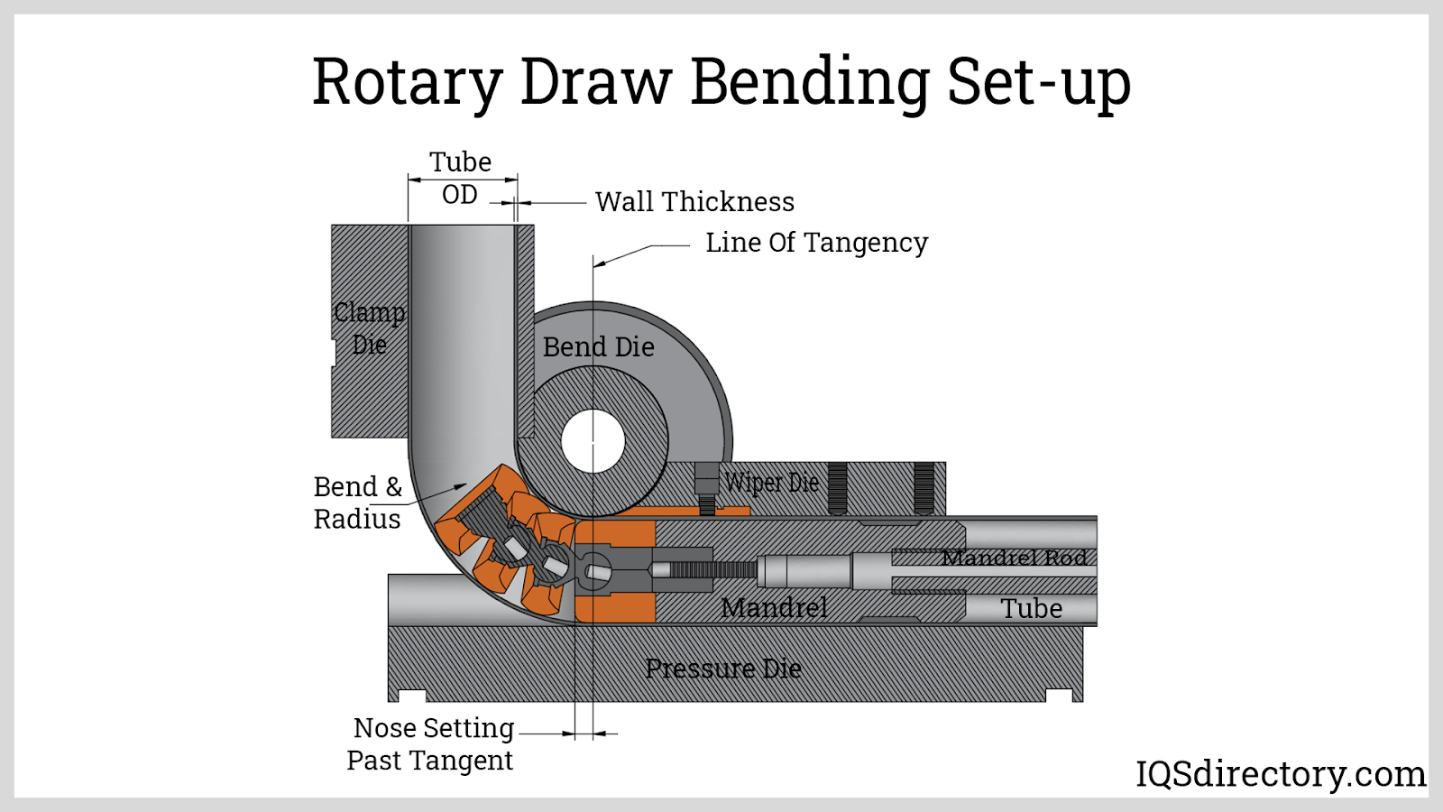 This method involves bending the tube using a set of interlocking dies, with internal support provided by a mandrel.