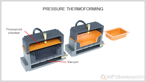 In pressure forming, air pressure is combined with the vacuum applied beneath the mold to force the plastic sheet into the mold cavity. This additional air pressure allows for more intricate details, such as textured surfaces, undercuts, and sharp edges, which are difficult to achieve with vacuum forming alone. This method is ideal for creating products with complex designs.