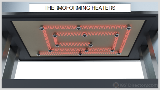 The first step in the thermoforming process is heating of a plastic sheet to its forming temperature.