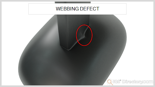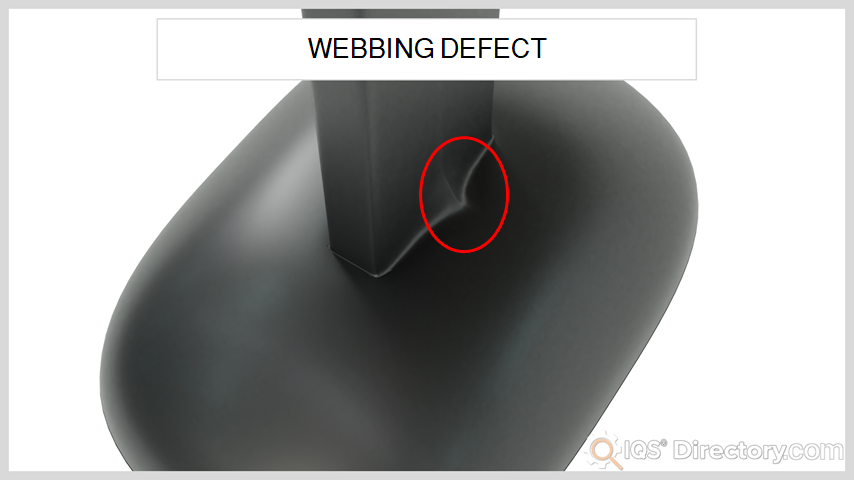 Webbing, or unwanted folds and wrinkles, occurs when the plastic folds onto itself. During the vacuum molding process, the thermoplastic stretches in a way that was not planned.