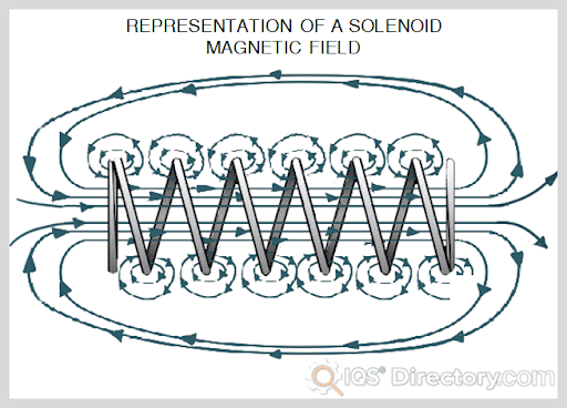 • A solenoid is an electromagnetic actuator that converts electrical energy into mechanical action. It consists of a coiled wire tightly wrapped around an iron core, and a ferromagnetic plug or plunger.
