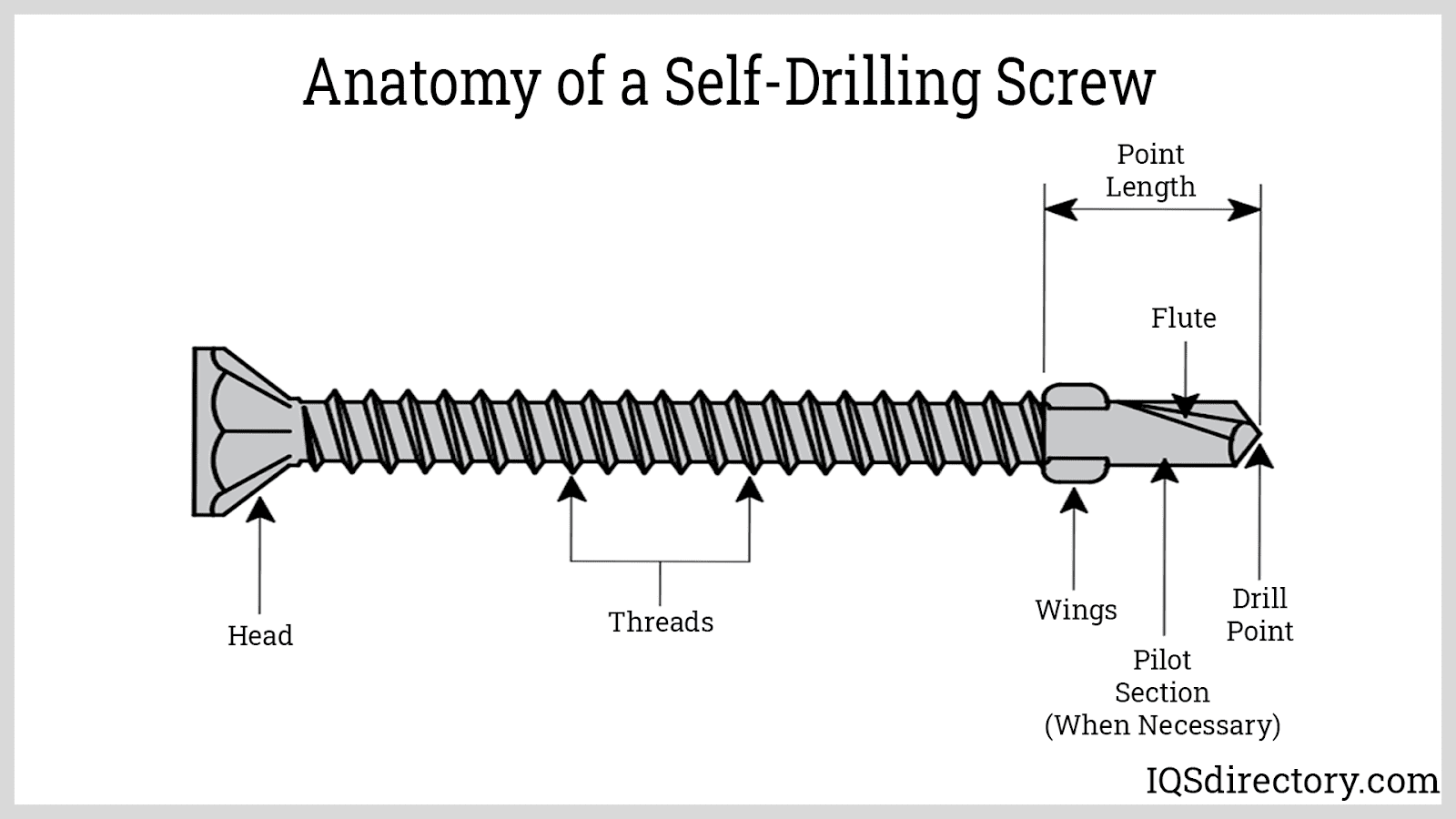 A self-drilling screw is a type of tool that has the same design features as a drill bit or cutting tool. As the name implies, self-drilling screws do not require a pilot hole in order to perform as a fastener...