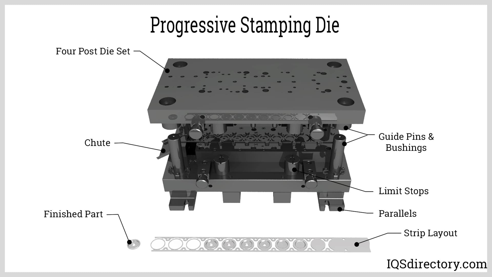 Die stamping is a cold forming process that takes a sheet of metal, referred to as a blank or tool steel, and cuts and shapes it using a single or series of dies to create a desired shape or profile. The force that is applied to the blank modifies and changes its geometry...