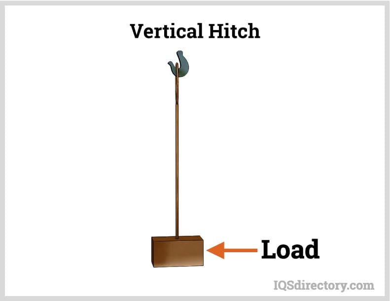 Vertical Hitch: A vertical hitch involves connecting one sling eye of the wire rope directly to the lifting hook, while the other eye is affixed to the load. This setup provides direct lifting for straight, vertical loads, maximizing the effective working load limit.