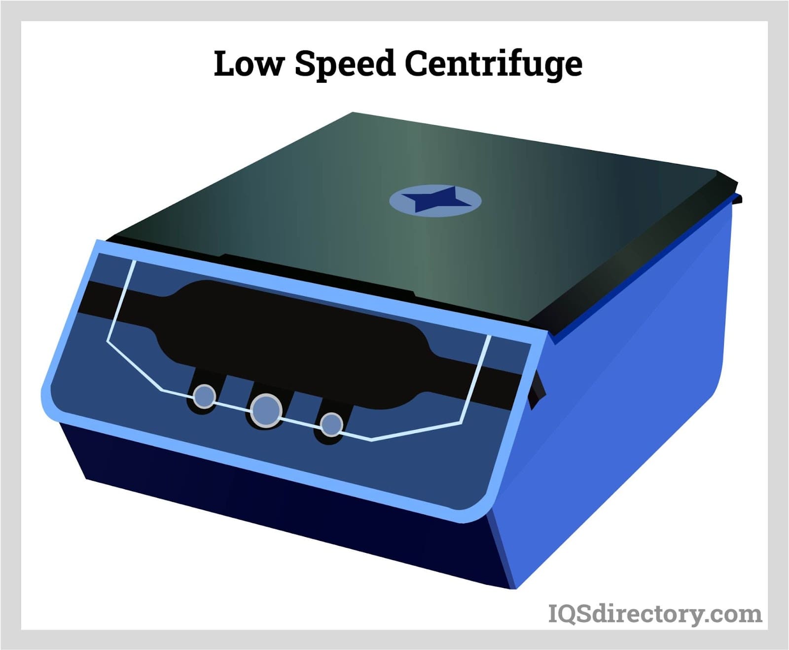 Low speed centrifuges routine sedimentation of heavy particles at speeds of 4,000 rpms to 5,000 rpms.