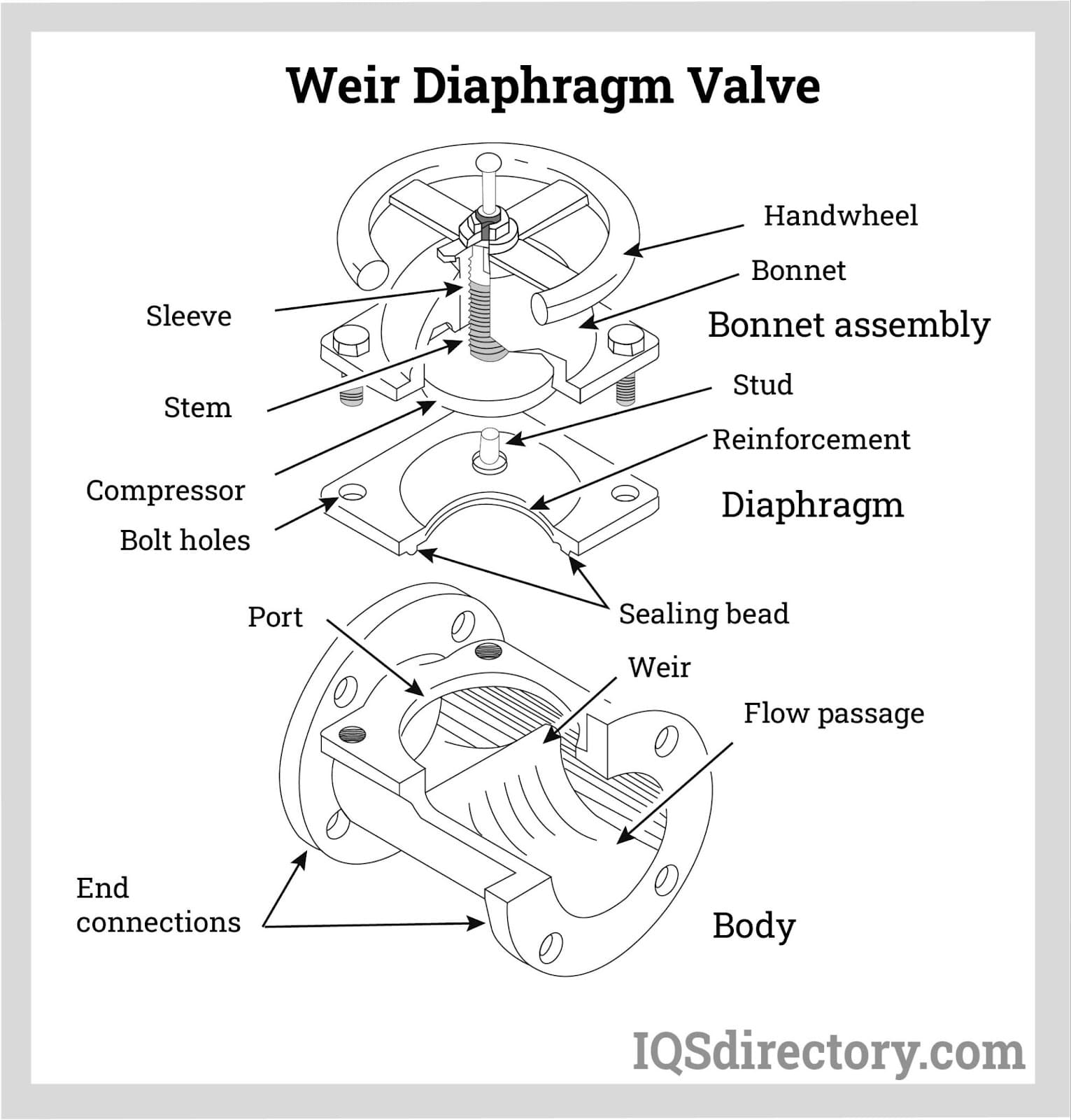 - Weir in the Flowpath: A raised structure where the diaphragm seals against.
