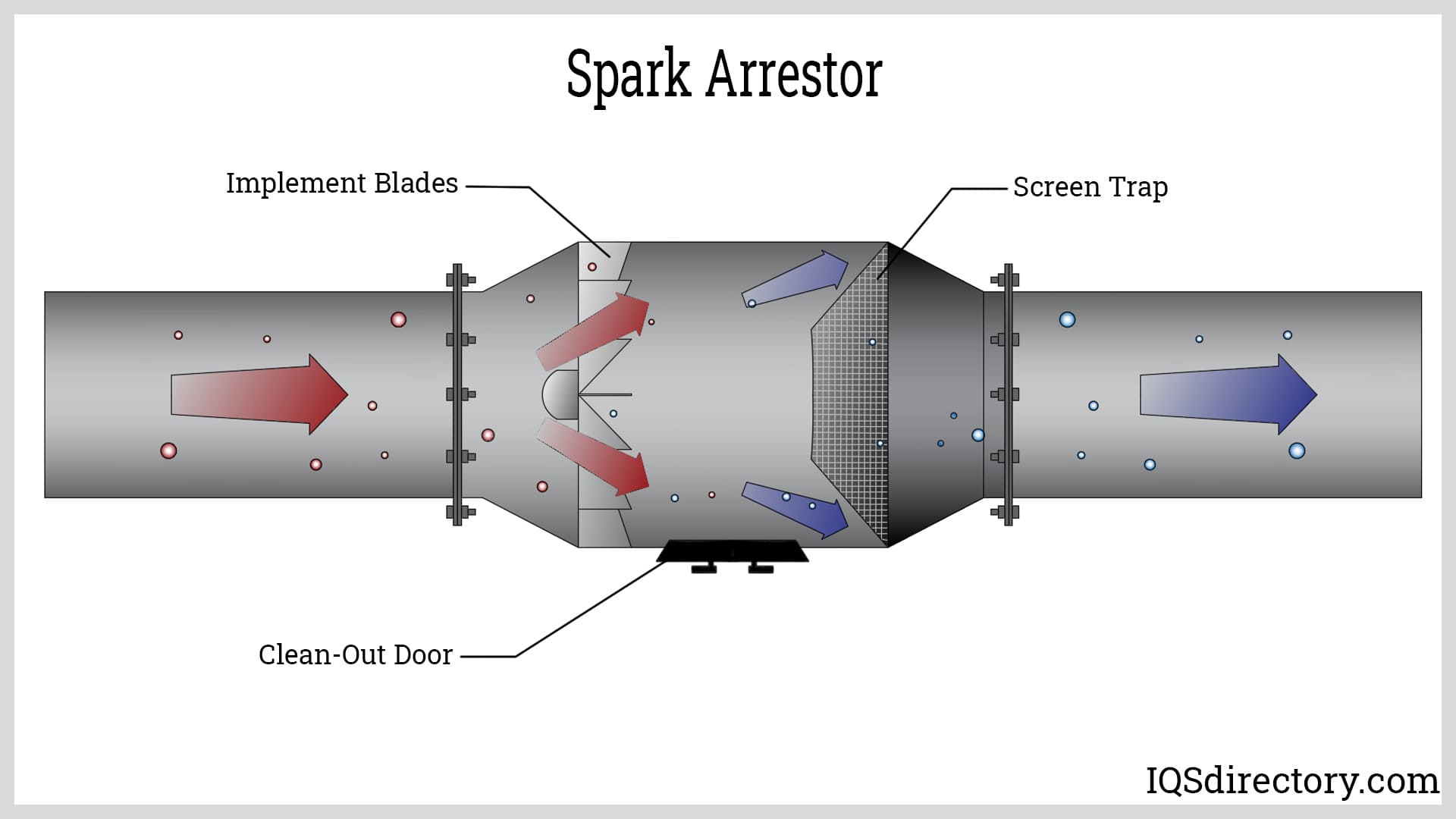 A spark arrestor is used for combustion preventative and is an add-on for systems that have potential for combustion, which traps exhaust and lower the temperature before the particles enter the dust collecting device.