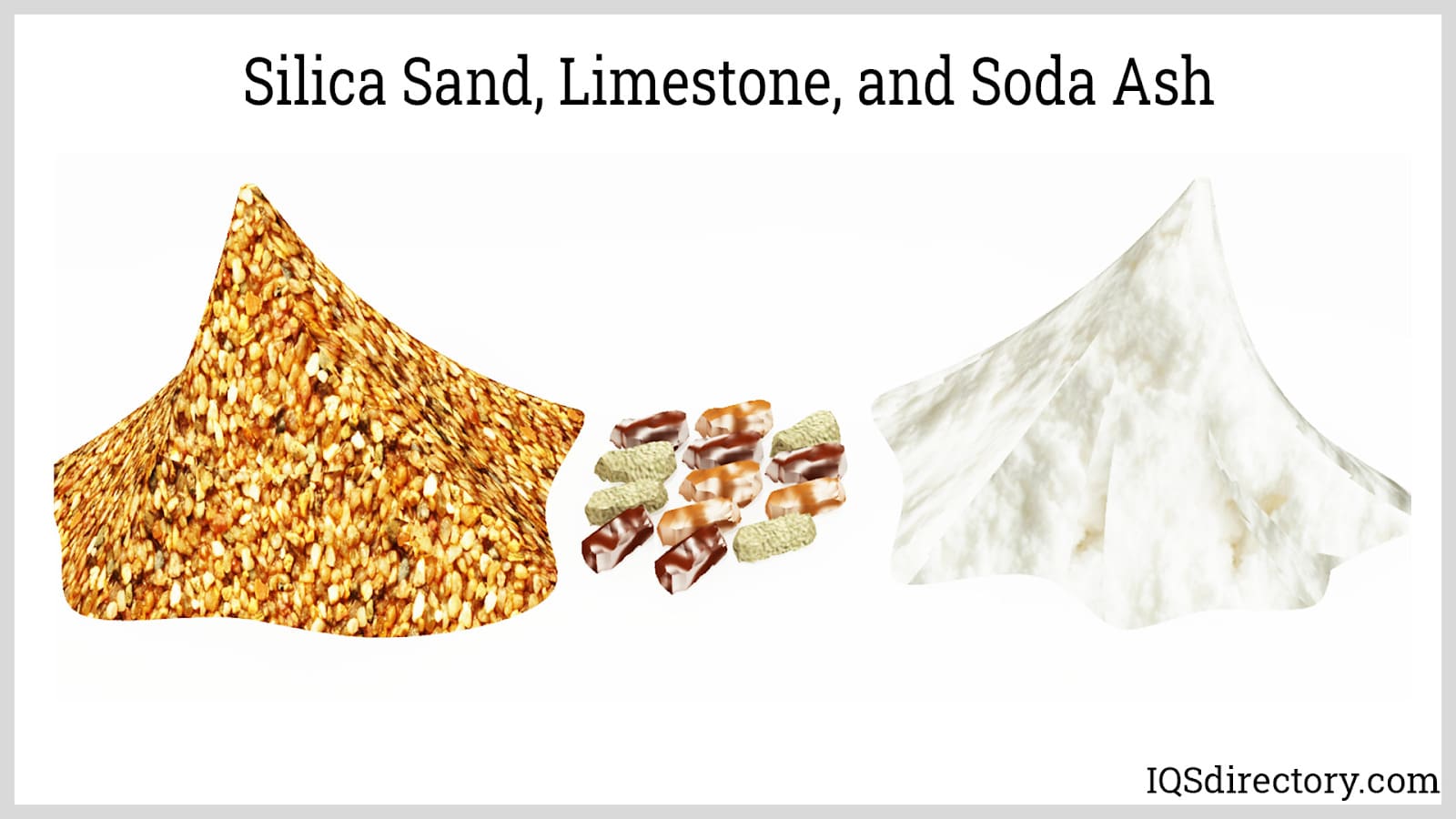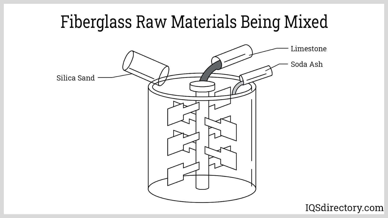 The ingredients for fiberglass include silica sand, limestone, and soda ash, which is carefully measured and mixed to form the batch.