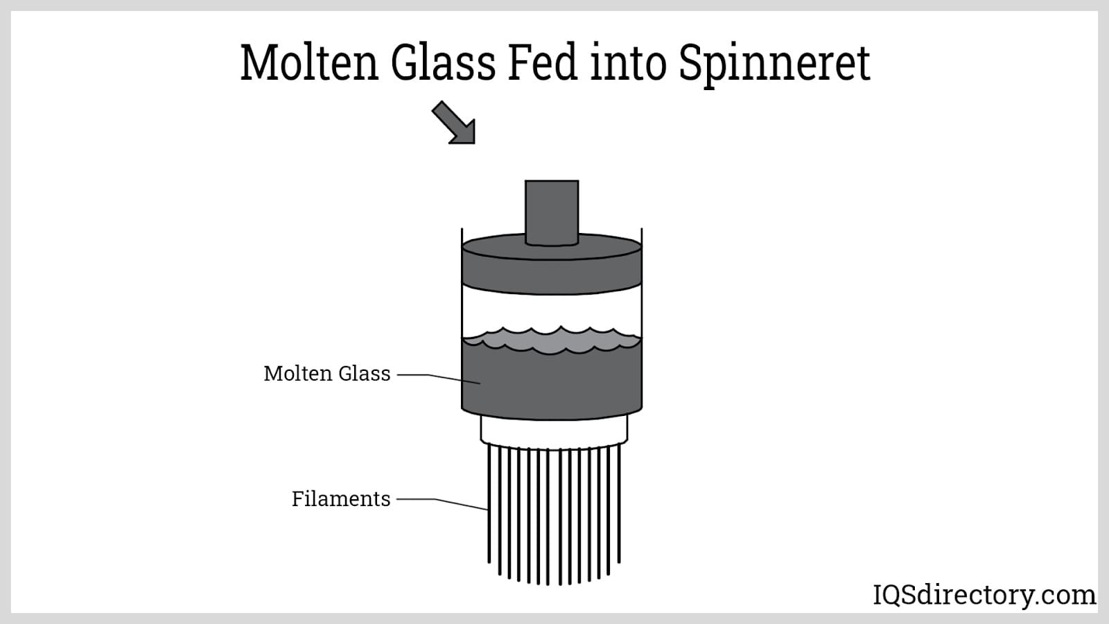 The molten glass is passed through fine filaments which creates the fiberglass.