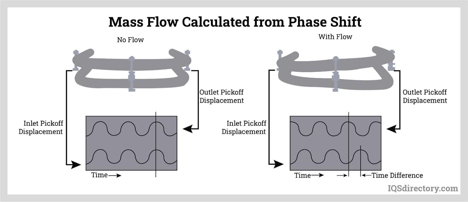 The readings of a coriolis flow meter will have different readings depending on the rate of flow and the displacement of the tubes.