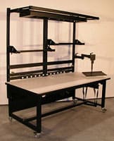 Workstations and work benches are manufactured for a variety of facilities and processes; industrial workstations and industrial workbenches provide workspace for machinists, assembly workers and many other industrial manufacturing processes. Custom industrial work stations can be portable stations made from lightweight materials, or they may be permanent workstations fabricated from steel or wood, depending on the needs of the industrial job site or garage workshop it is made for. Suitable for use in areas with water, dust, vibrations and wide temperatures are apart of the environment, industrial workstations can be used as clean room tables, light tables, drafting tables, packaging tables, laboratory tables, and more. They can be built for rugged durability and harsh work environments and can be made to fit packing, process control, shipping, factory automation or laboratory requirements.
