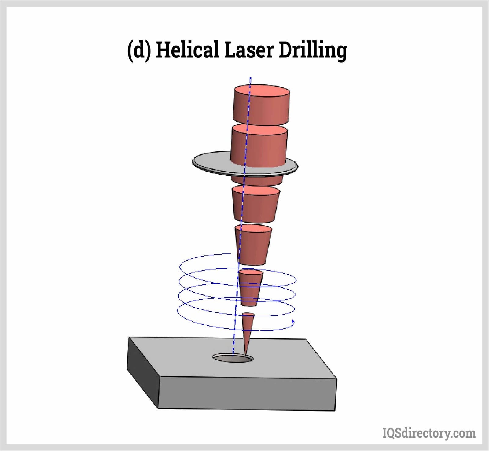 Helical laser uses a moving laser that rotates relative to the workpiece like a conventional drill bit.