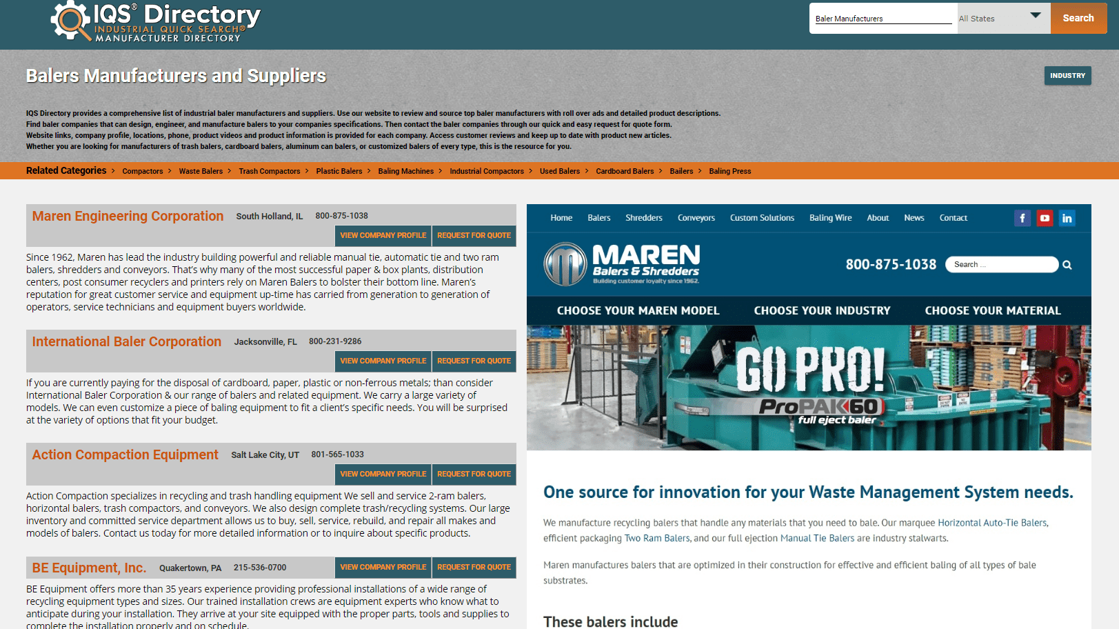 You have invested in your website and you need to make sure it pays off. Industrial Quick Search (IQS Directory) can help can get you qualified request for quotes. IQS Directory provides top position on keywords that have high conversions for your company’s product or service searches on Google and Bing.