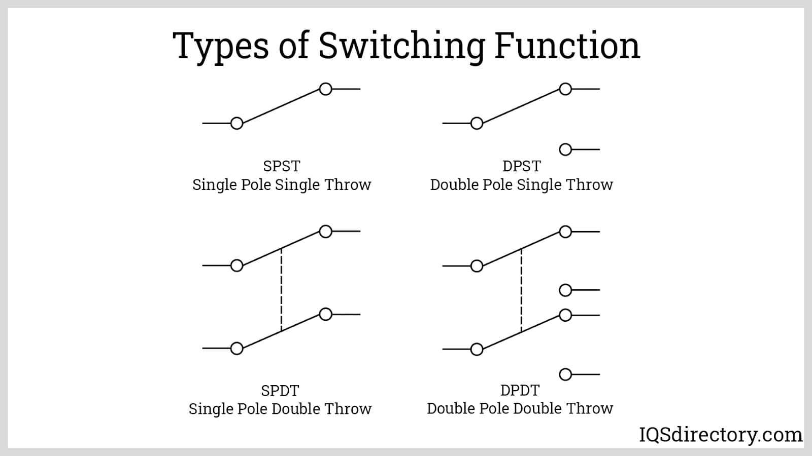 Switches can be characterized according to the number of poles which refers to the number of circuits a switch can control and throws, the number of connections the switch can make.