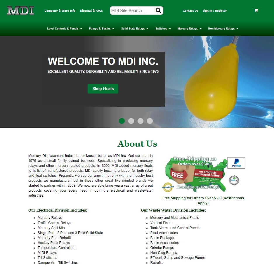 Mercury Displacement Industries manufactures liquid level switches. Wide and narrow mechanical or mercury type floats, high temperature floats and vertical floats are also available. Our float level switches, mechanical level switches and liquid level switches are designed for water and sewage.