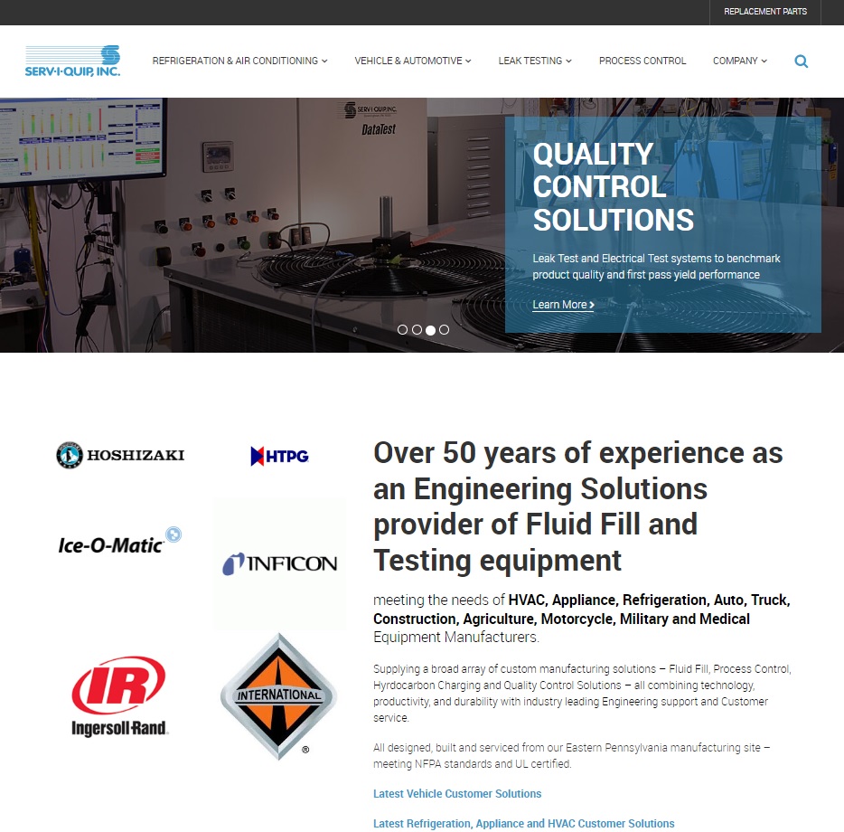 Providing quality production line process equipment to a variety of industries, SERV-I-QUIP offers data acquisition systems, data logging equipment, data acquisition software and systems integrators. We also produce refrigerant charging equipment, flow meters and leak test gas systems.