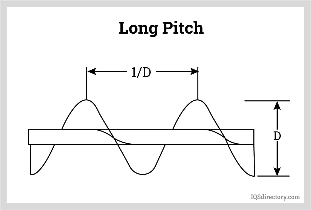 Conveyor screw in which the diameter is greater than the pitch. Short pitches are used on inclined screw conveyors with slopes measuring 20° or greater.